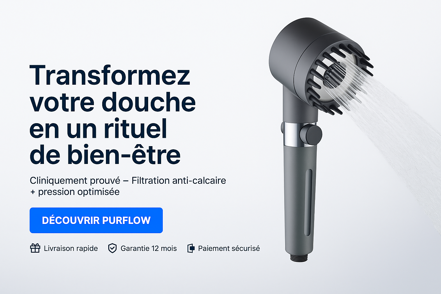 Pur Flow purifie l’eau pour préserver la santé et la beauté de votre peau et de vos cheveux.