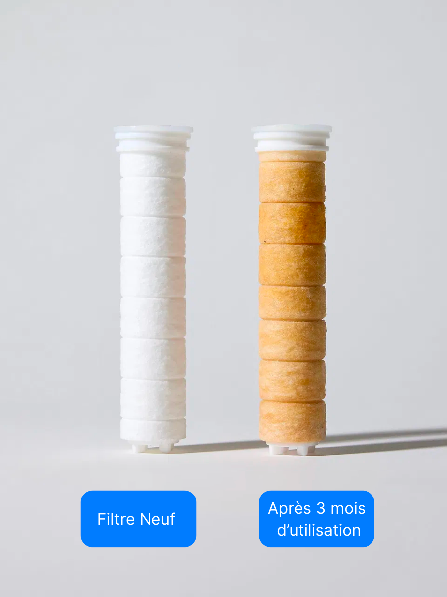 Les cartouches PurFlow utilisent une filtration multicouche : pré-filtration des particules, réduction du chlore et des odeurs, limitation du calcaire, puis capture des micro-impuretés.